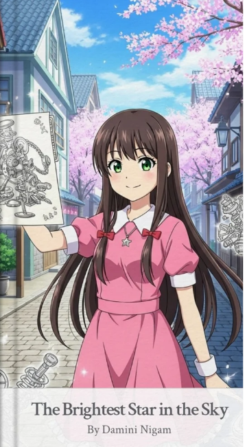 In a bustling town filled with bright colors and happy faces lived a girl named Akari. She was very good at many things, especially drawing and building amazing contraptions. Everyone admired her cleverness.